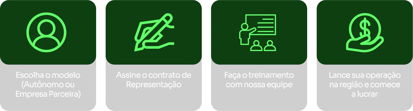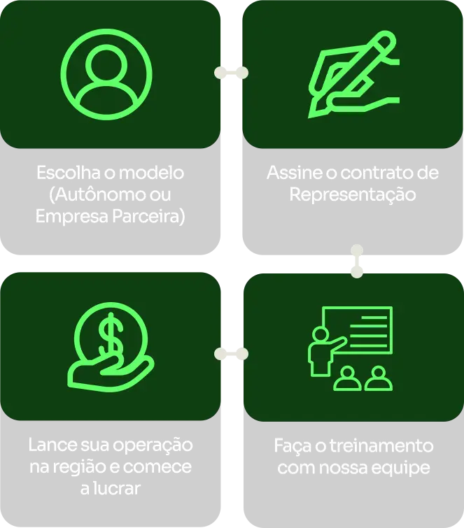Não é franquia — é parceria independente, com modelos flexíveis para diferentes perfis.