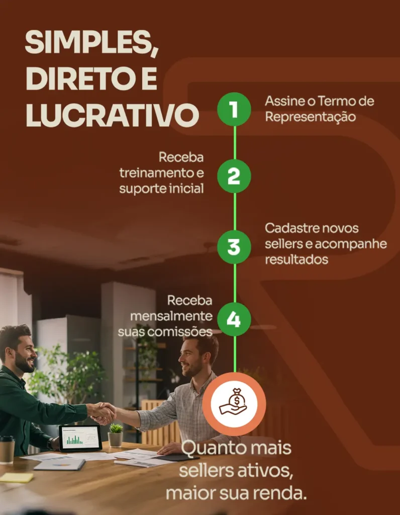 Comissão de 0,5 a 1% sobre vendas dos sellers indicados